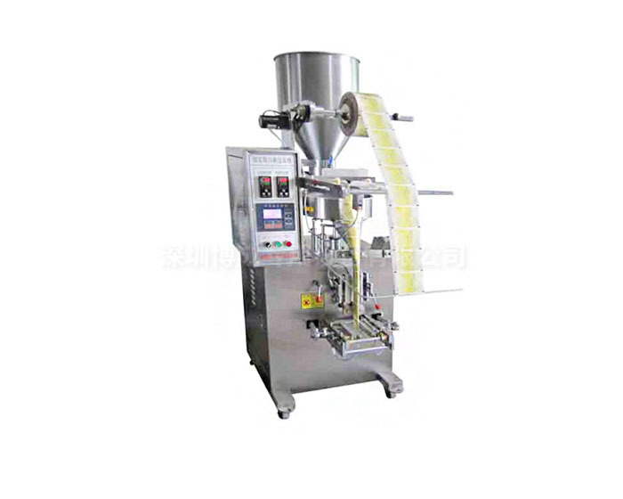 本機(jī)具有自動(dòng)完成制袋、計(jì)量、充填、封合、分切、計(jì)數(shù)、打印批號(hào)等功能,并采用微電腦控制器,驅(qū)動(dòng)步進(jìn)電機(jī)控制袋長(zhǎng)及商標(biāo)定位。本機(jī)性能穩(wěn)定、調(diào)整方便、檢測(cè)準(zhǔn)確,智能控制形成誤差極小。本機(jī)可按物料的不同,可配制相應(yīng)的顆粒、多料、液體、粉劑、醬體的下料機(jī)構(gòu)。增加附件可完成日期打印、振蕩下料,易撕口等功能。